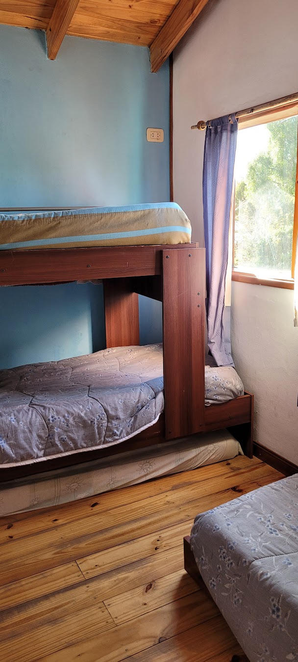La cabañas cuentan con una cama doble, una triple y en planta baja una cama individual.